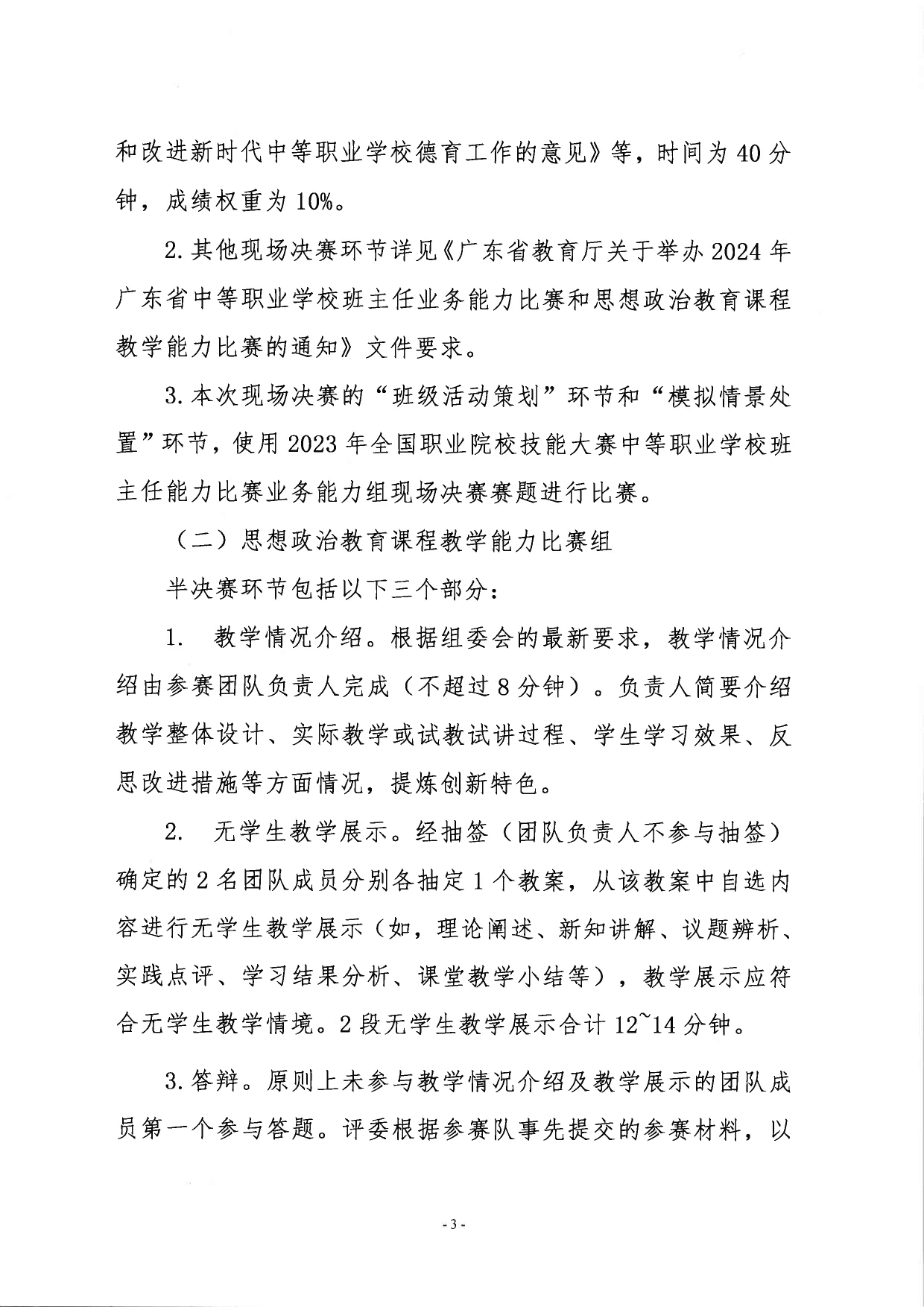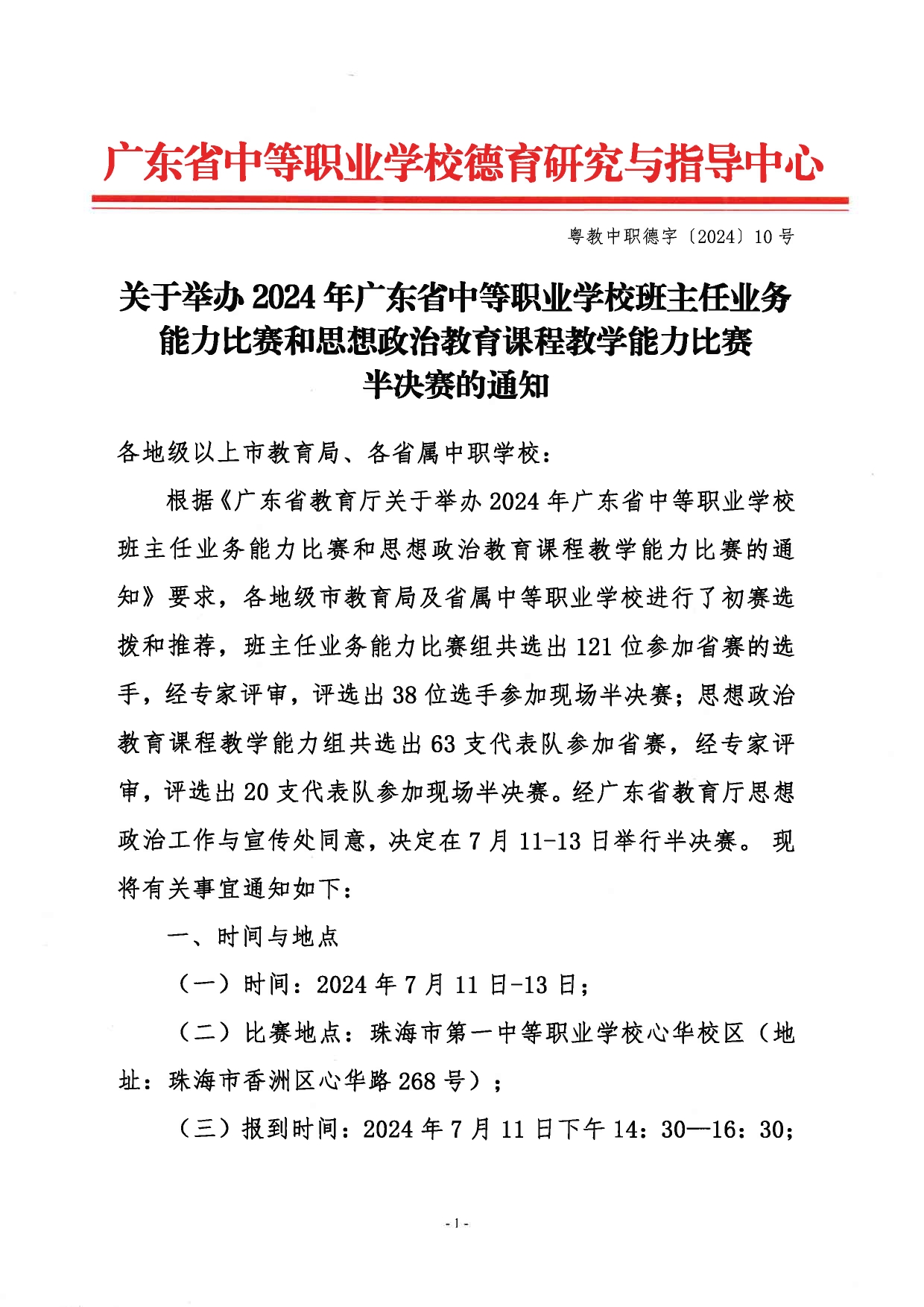 關于舉辦2024年廣東省中等職業學校班主任業務能力比賽和思想政治教育課程教學能力比賽半決賽的通知