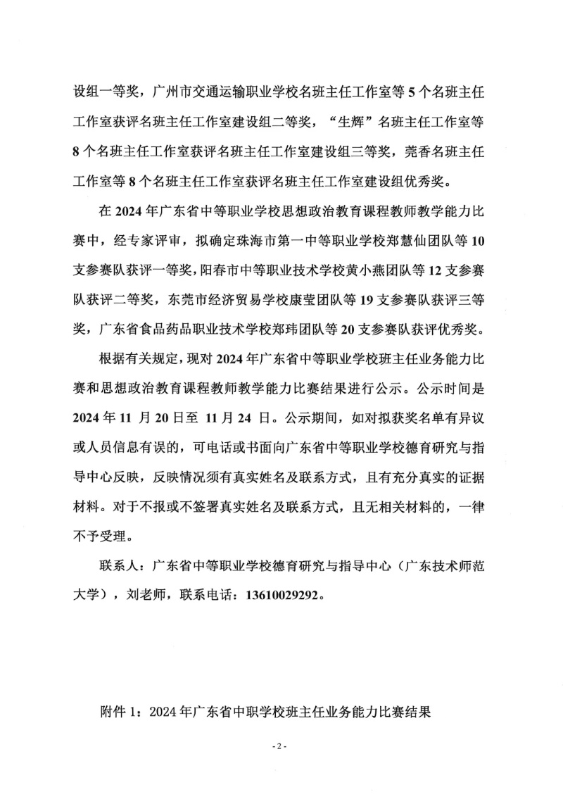 【獲獎名單】2024年廣東省中職班主任業務能力比賽和思政課教學能力比賽結果公示