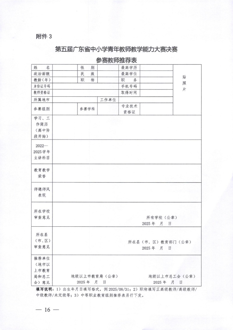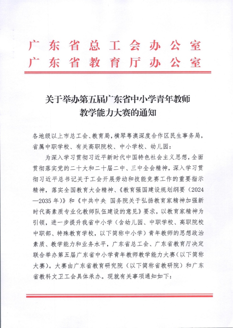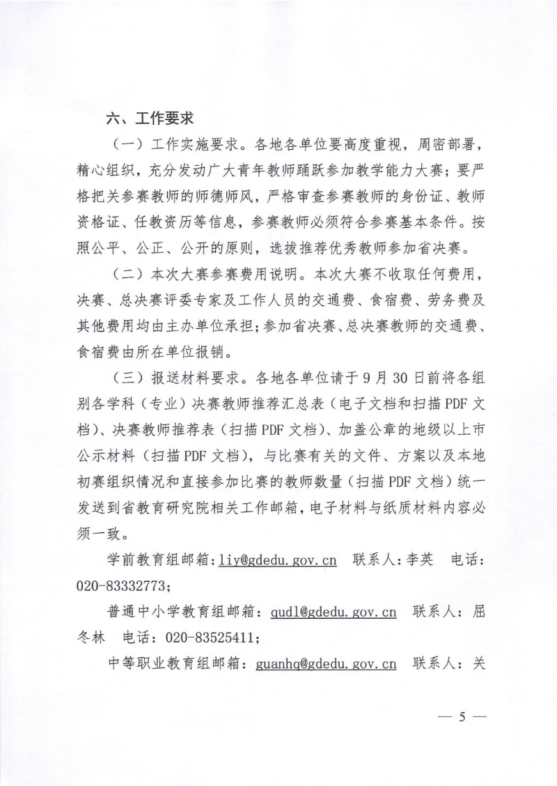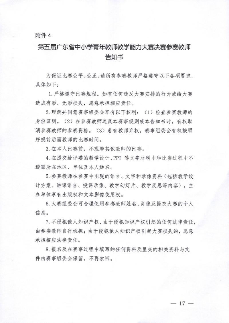 關于舉辦第五屆廣東省中小學青年教師教學能力大賽的通知