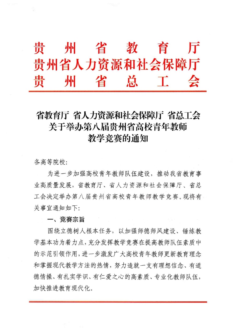 關于舉辦第八屆貴州省高校青年教師教學競賽的通知