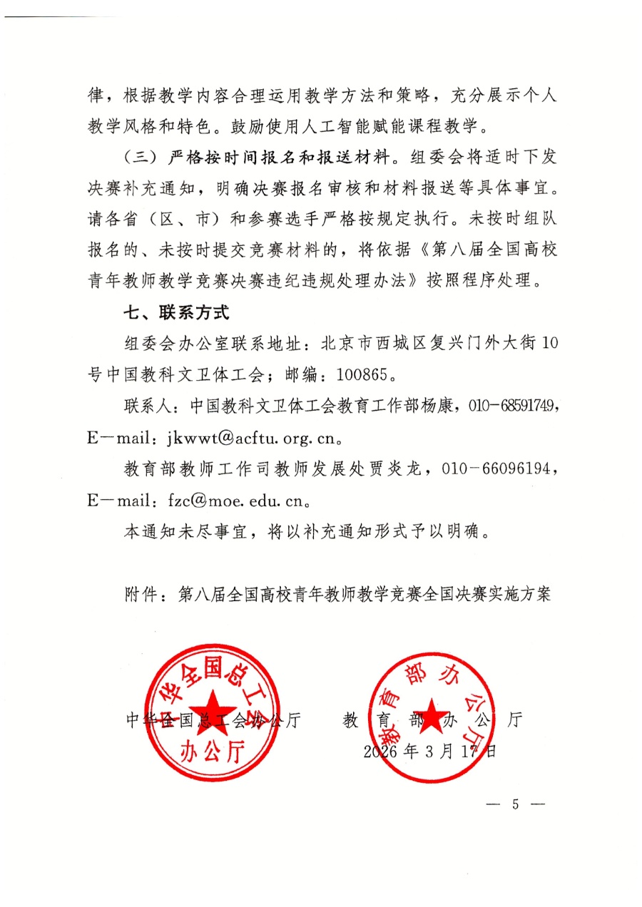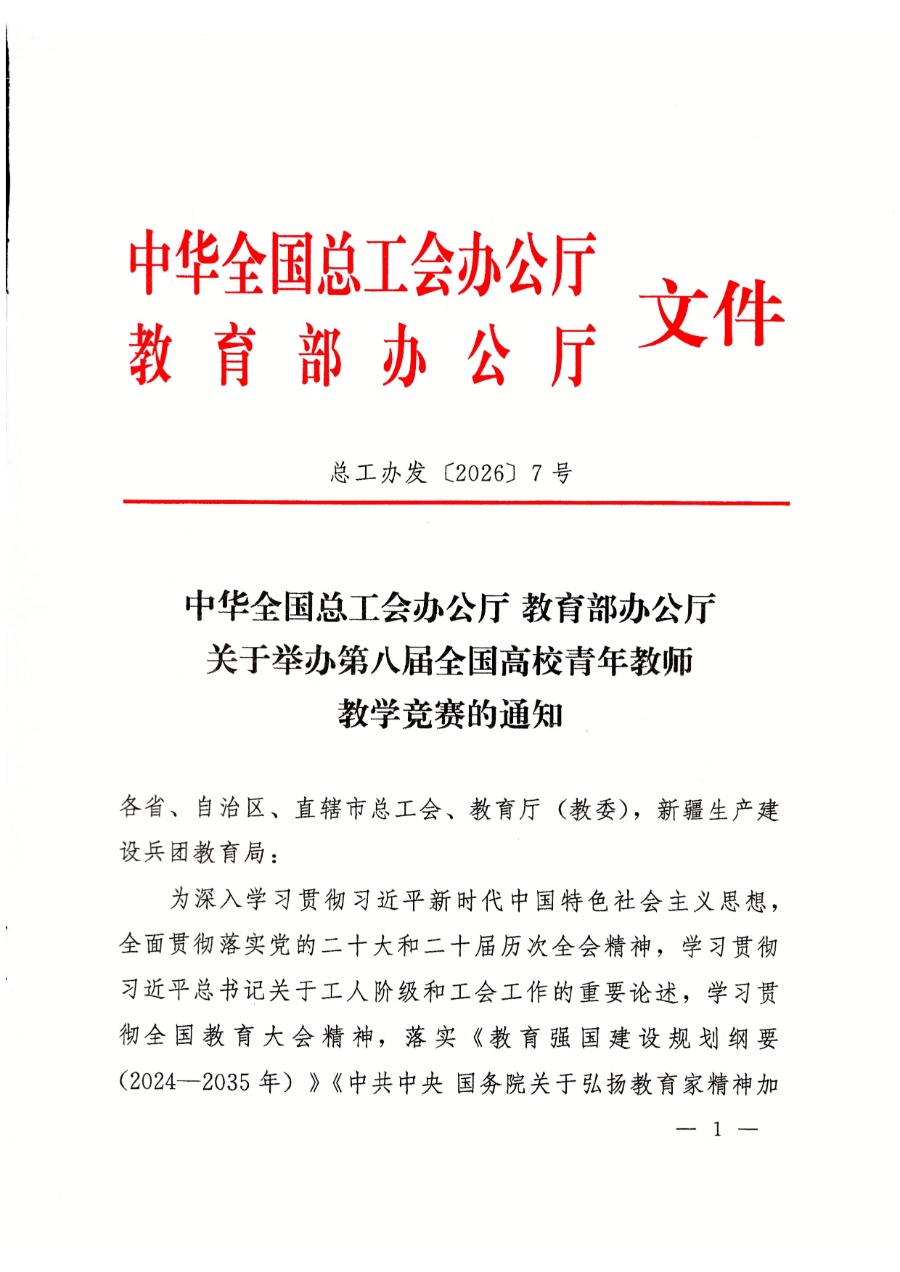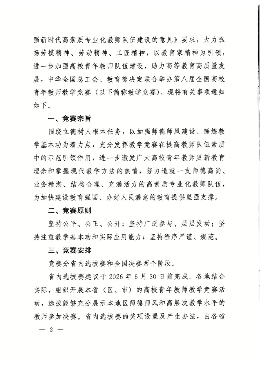 關(guān)于舉辦第八屆全國(guó)高校青年教師教學(xué)競(jìng)賽的通知