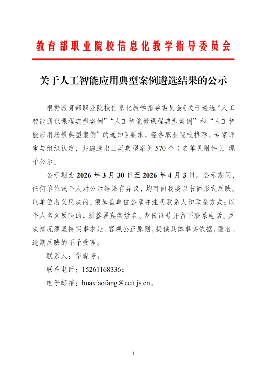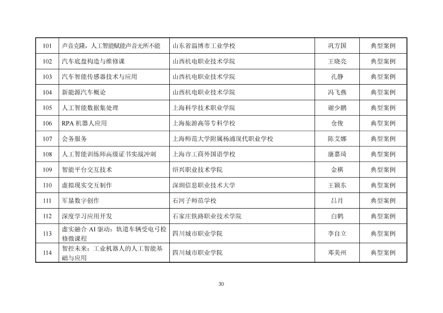 教育部:關(guān)于人工智能典型案例遴選結(jié)果的公示