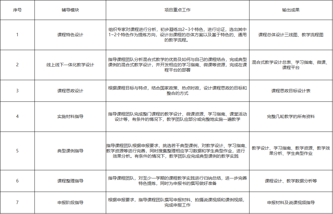 針對課程的教學設計將由專家團隊進行專業輔導,從課程線上線下內容設計、說課視頻制作要求、教學活動設計、教學評價方式等方面進行分析指導,幫助教師打磨出優秀的教學設計。